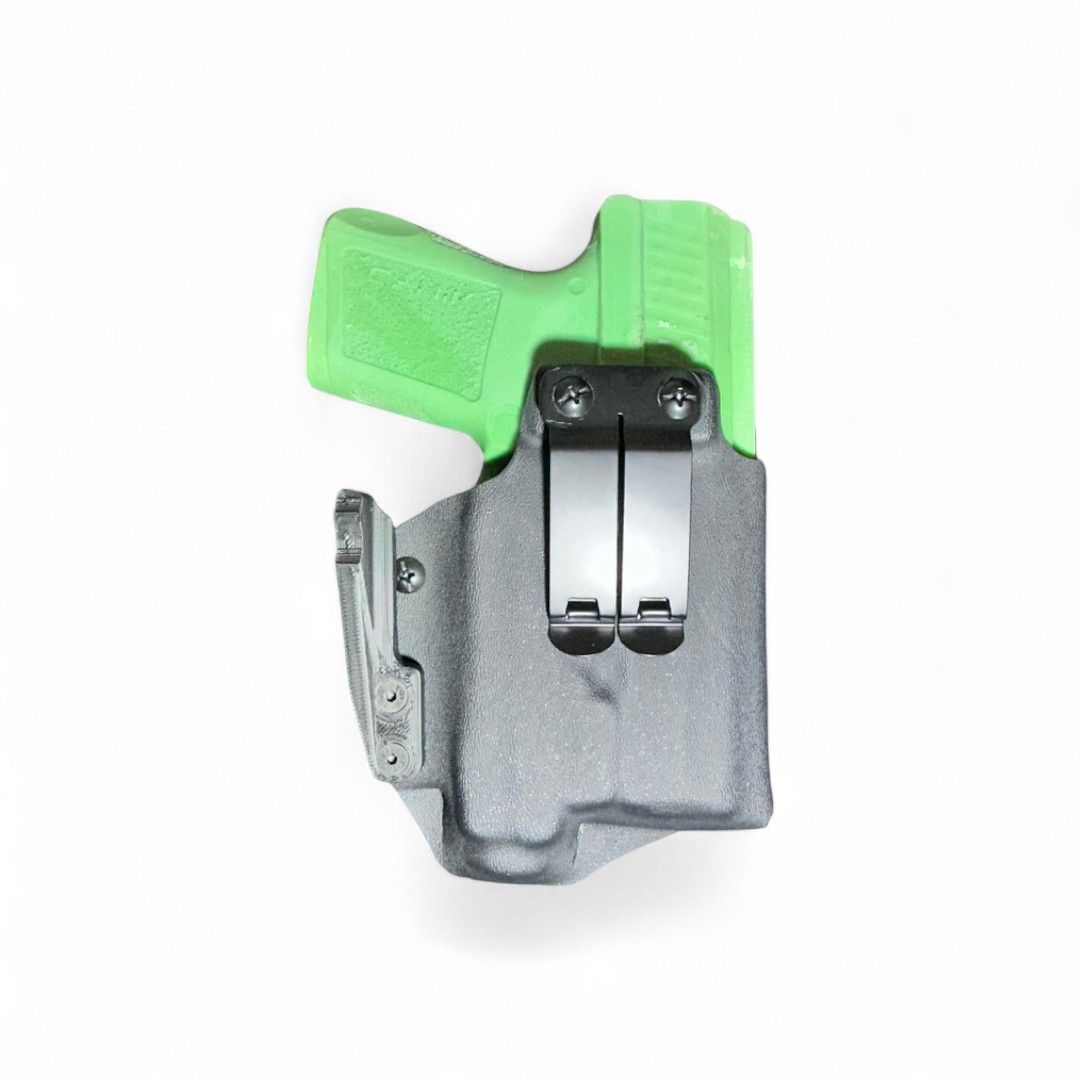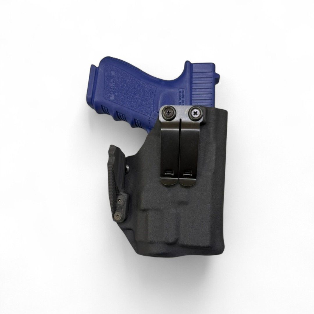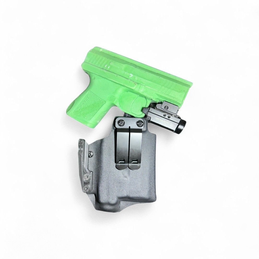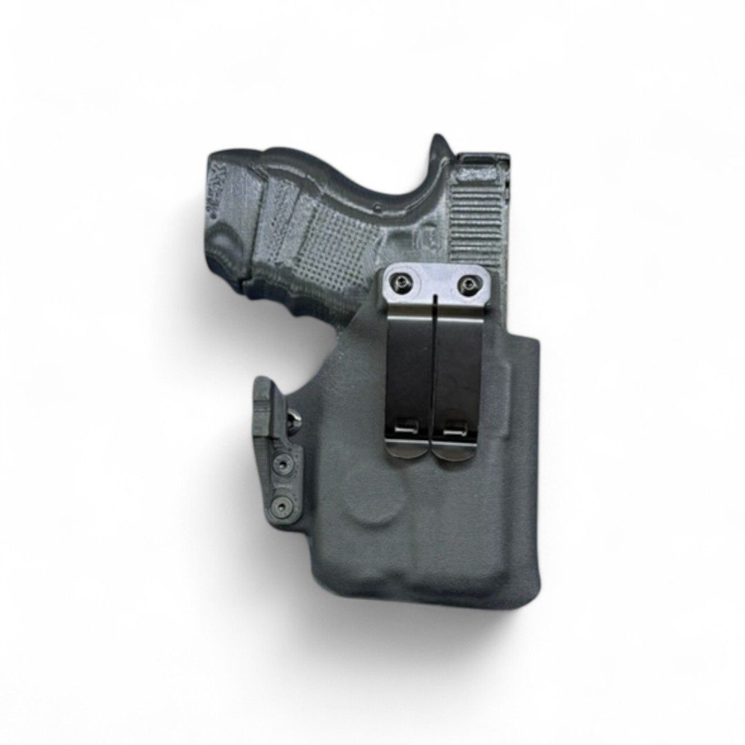 La funda de kydex Modelo D es su compañero ideal para el porte de armas, diseñada especialmente para integrar un módulo de luz/laser. Con su construcción robusta, esta funda no solo asegura la protección de su arma, sino que también le permite un acceso rápido y efectivo. Disfrute de la tranquilidad que brinda saber que su equipo está protegido y accesible cuando más lo necesita.